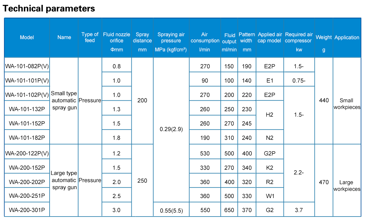 LPA-101 or LPA-200 is a low pressure automatic spray gun, which is suitable for small or large workpieces;