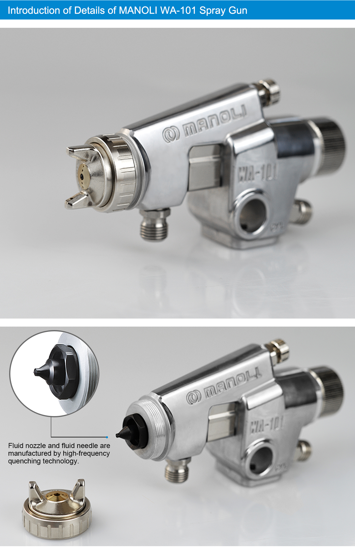 Advantages of Our Company Abundant common products can meet the needs of different production lines Advantage of Brand 16-year brand MANOLI has more than 16 years of rich experience and provides services for more than 2,196 customers directly or indirectly, including large enterprises, such as KONE, GUANGRI, YINLONG NEW ENERGY, BYD and so on. Advantage of Products 64 Different Kinds of Products All of MANOLI products have 10 large types, 64 models and 2,516 product parts and accessories to meet the needs of customers from different kinds of industries. All of MANOLI products are enough and in stock. Advantage of Quality Factory Provides the Original Products MANOLI is a professional air spray gun manufacturer which provides all different kinds of not only standard spray guns but also OEM products directly for our customers. MANOLI products have been tested in the market and they are so good and durable. Advantage of Services 5S Class Service Support MANOLI provides free services, such as troubleshoot problems on the spot, option of products, parts and accessories supply, maintenance, service consulting, OEM, etc. After-sales service team promises to solve customers’ problems within 24 hours.