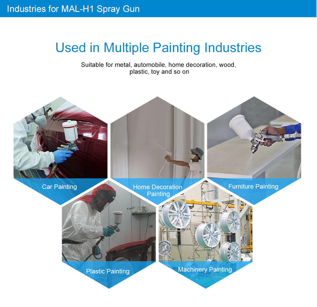 Industries for MAL-H1 Spray Gun Used in Multiple Painting Industries Suitable for metal, automobile, home decoration, wood, plastic, toy and so on